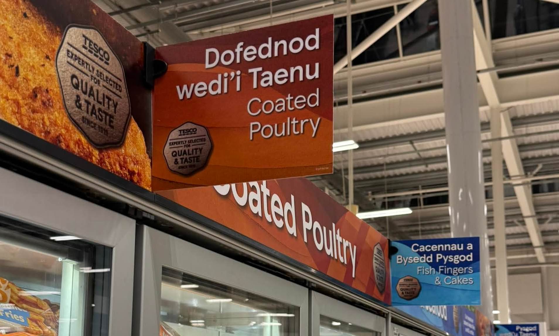 Shoppers in a Tesco supermarket in Cornwall were left perplexed after their everyday staples were signposted in Welsh rather than their native Cornish.